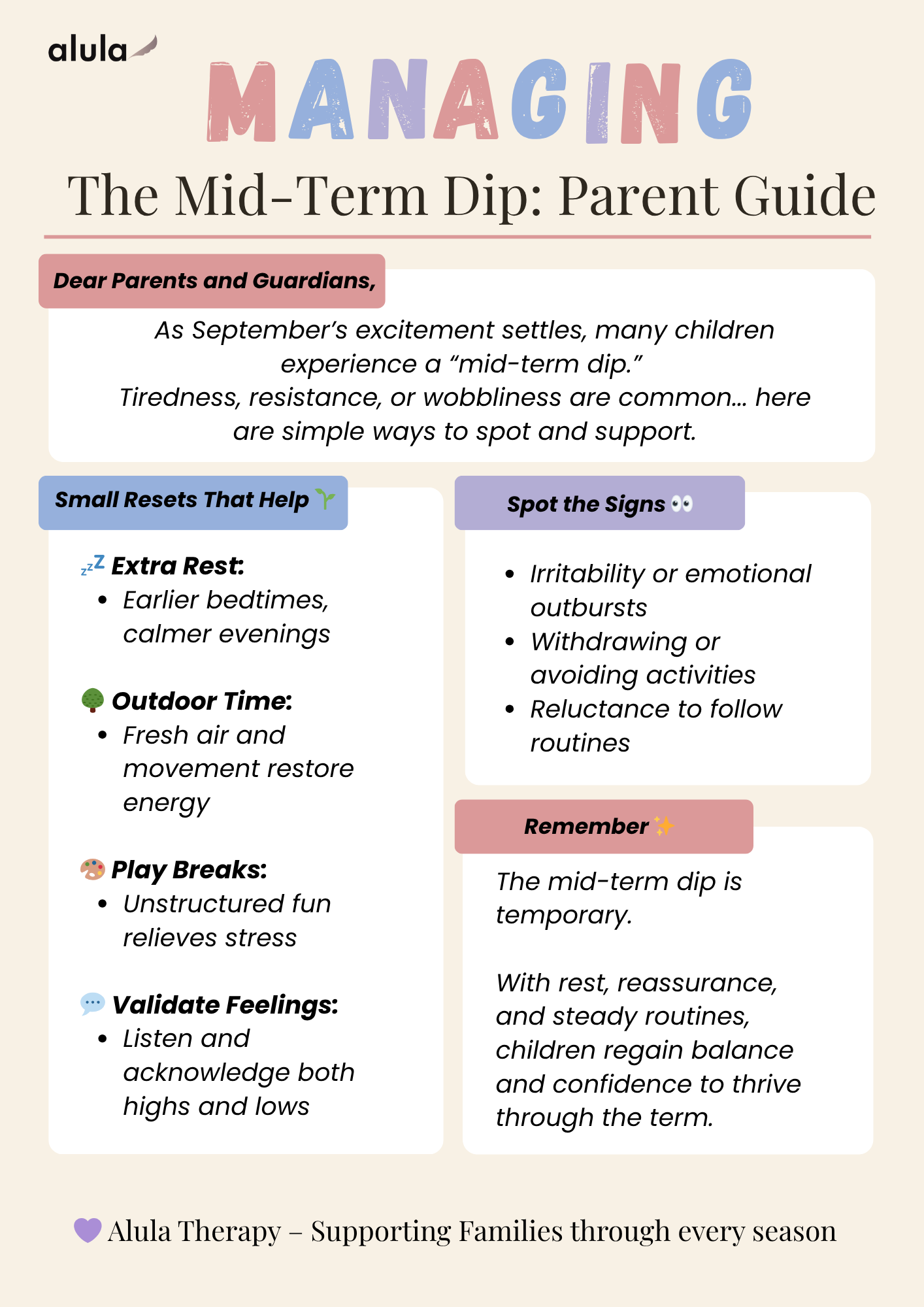 This short guide shares simple, encouraging strategies to support your child through the “mid-term dip.” From spotting signs of tiredness or resistance to building small resets into the week, it offers calm, practical steps to help your child regain balance, confidence, and energy as the term continues.